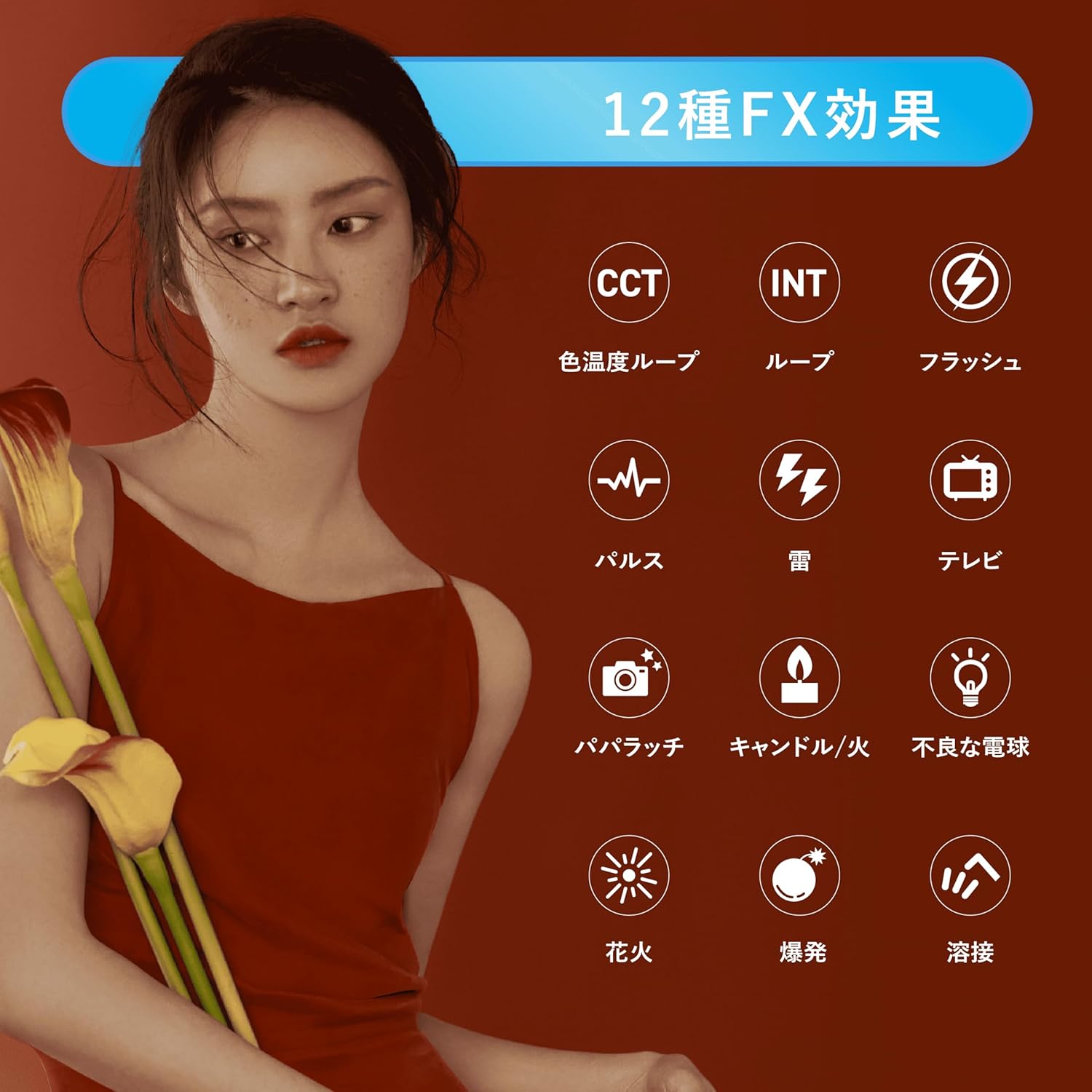 CRI平均96、TLCI平均98と演色性も高く、撮影の時間帯に依存せずに1台で自然光に近い光を演出できます。加えて、コントラスト調整の幅が広く、人物撮影や物撮りに最適です。
